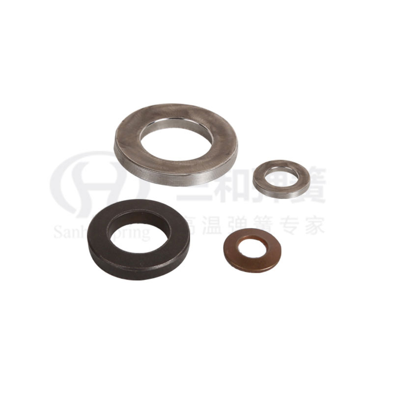 碟形彈簧又名貝勒維爾彈簧墊圈,是法國人貝勒維爾發明的,其成圓錐形盤狀,既可以單個使用,又可以多個串聯或并聯使用,在上內緣和下外緣處承受沿軸向作用的靜態或動態載荷,被壓縮后產生變形,直至被壓平,以儲存能量形式作為活載荷。在需要時自動轉化為密封所需要的附加壓縮載荷,來降低墊片、填料使用中對上緊的持續要求。